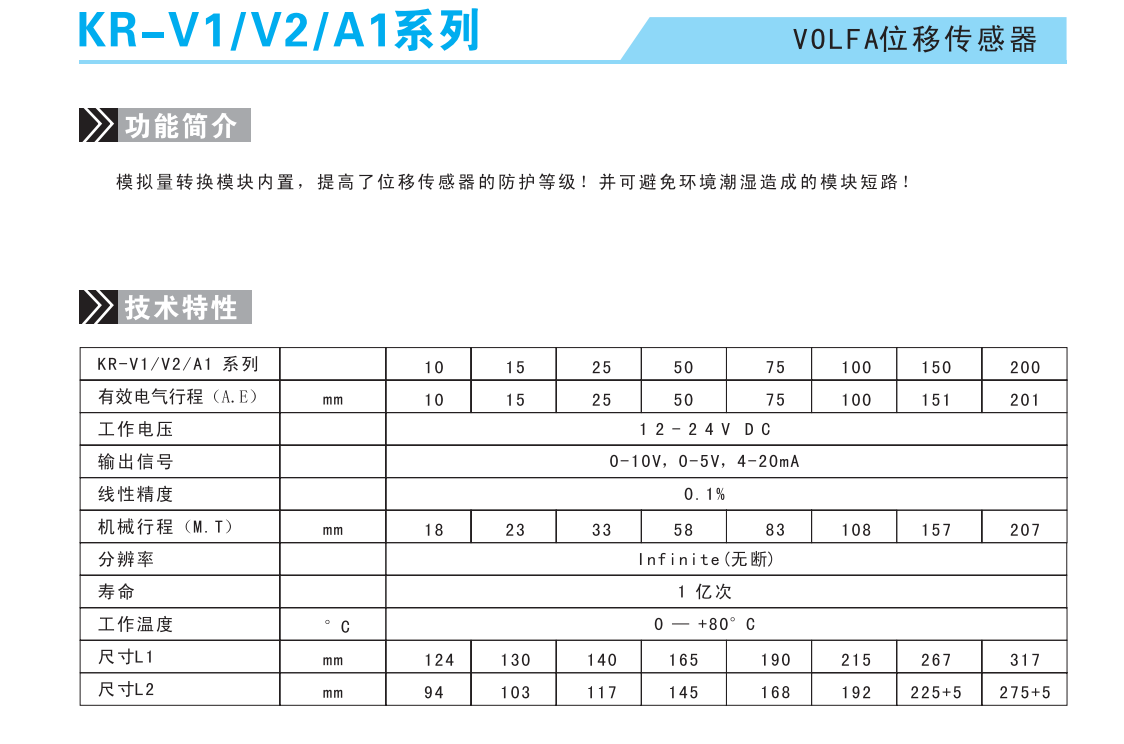德國Volfa KR-200-V1位移傳感器30A廣州南創(chuàng)電子科技有限公司
