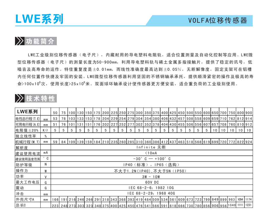 LWE-50~LWE-900 德國volfa位移傳感器 電子尺