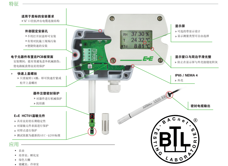 E+E ee210溫濕度顯示儀表防止在顯示屬與外殼接繼處積灰  快速上蓋螺絲 IP65/NEMA 4  只需旋轉(zhuǎn)1/4圈,即可快速擰緊或 ,外光  松開上蓋螺絲 器件注塑密封保護(hù),應(yīng)用農(nóng)業(yè) 培養(yǎng)室,孵化室 綠色大棚 儲(chǔ)藏室,冷卻室 氣象控制XPF廣州南創(chuàng)電子科技有限公司