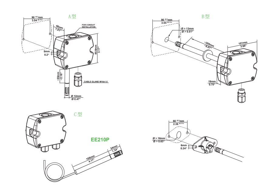 奧地利E+E ee210溫濕度探頭安裝尺寸圖:XPF廣州南創(chuàng)電子科技有限公司