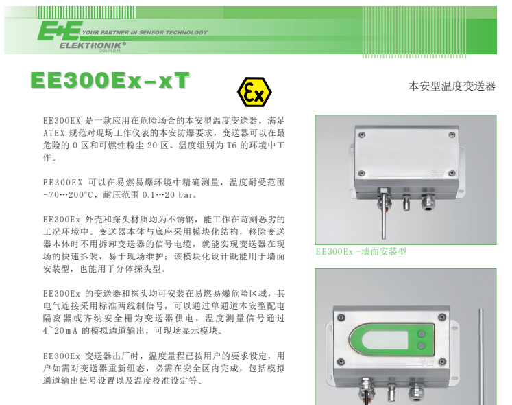 奧地利E+E ee300EX溫濕度傳感器產品概述: