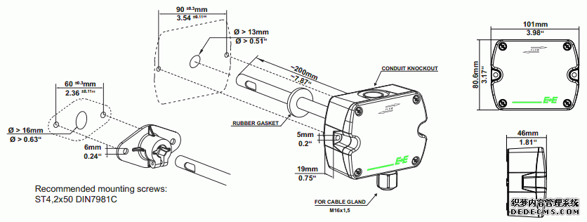 奧地利E+E EE850系列CO2變送器產(chǎn)品尺寸圖:gR3廣州南創(chuàng)電子科技有限公司