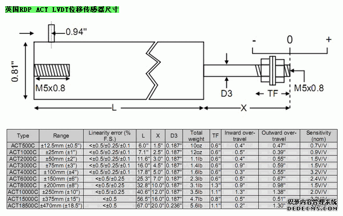 英國(guó)RDP ACT LVDT位移傳感器技術(shù)參數(shù)圖:KqG廣州南創(chuàng)電子科技有限公司